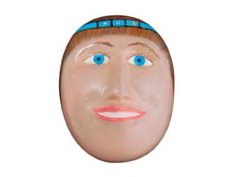 John Joseph Kempter of Denver served in the South Pacific during World War II, earning a Bronze star and several unit citations. He raised five children and retired from Shell Oil Co. His works have been displayed at Envisage, the Lakewood Arts Council and Senior Arts of Lafayette, Colo. At 88, he is under the care in his home of The Denver Hospice and his loving family. His mask features a young lady with an interest in sports, “Ready for the Games.”