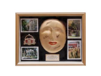 Frances Owens was Colorado’s First Lady from 1999 to 2007 and created a mask bearing the signatures of the most recent first ladies – representing 33 years of service. The picture depicts the Governor’s Mansion and its beauty. And the mask shows that common alliances often transcend political beliefs and allow us to partner on cause that affect all of us. The mask is signed by Colorado First Lady Jeannie Ritter, and former first ladies Frances Owens, Bea Romer and Dottie Lamm.