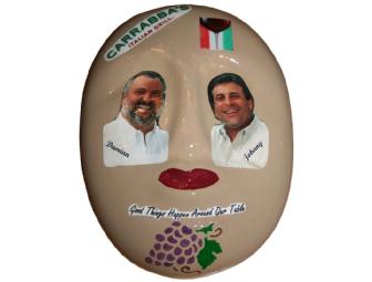 This mask is a tribute to our founders Johnny Carrabba and his Uncle Damian Mandola, who's passion for food and their love of people has made Carrabba's possible. From all of us at Carrabba's we say thank you!!