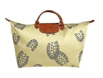Jeremy Scott and Longchamp collaborate for a third time with, Le Pliage Stomp featuring footprints randomly stamped on the bag.