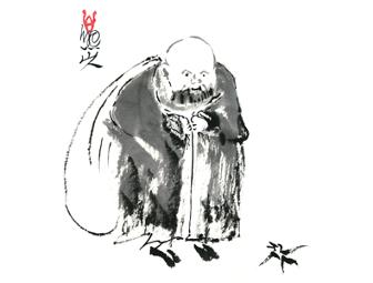 For prints of "Hotei Bird and Monk" go to the Shambhala Sun online gallery.