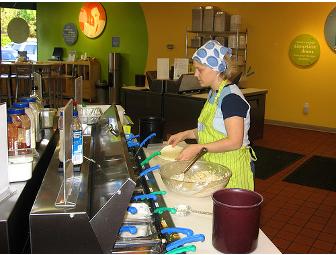 There's a designated workstation stocked with fresh ingredients for each dish on our monthly menu. You simply: