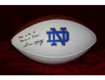 Play like a champion today! Official University of Notre Dame college football signed by Coach Lou Holtz.