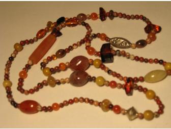 This is a striking amber, jaspar, carnelian and silver necklace, from M. Lowe & Co. jewelers in Berkeley.