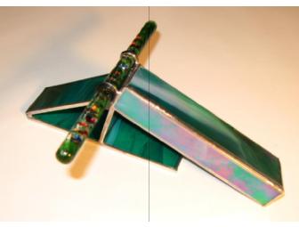 Nothing but beautiful visions await you with this is artisan-made, blue-green stained glass kaleidoscope, made by Aurora Lights in Santa Barbara.