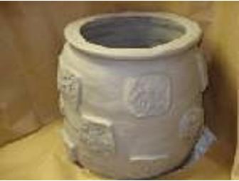This lovely clay pot was created by the 6th Grade students of Cedarcrest Academy. The pot is made of clay and is approximately 1' X 1'. The 15 students each created their ouw clay figures which depict their memory's of Cedarcrest Academy. These figures have been incorporated