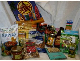 Enjoy a gift bag full of food including chips, cracker, dried fruit, nuts and more from Trader Joe's - where value, adventure and tasty treasures are discovered, every day!
