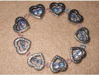 Silver hearts and glass beads