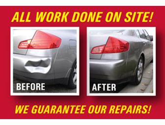 Collision on Wheels specializes in repairing cars and trucks which have had minor collisions and minor fender benders. The highly trained, certified automotive technicians expertly provide scratch and dent repair and then paint the vehicle right at your home or office. THEY COME TO YOU!!! This gift certificate will give you up to $75 off of your next repair fee. Gift Certificate expires 5/15/2009. Learn more at www.collisiononwheels.com.