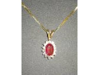 Stunning 14k Yellow gold Ruby and Diamond Pendant with Gold Chain.