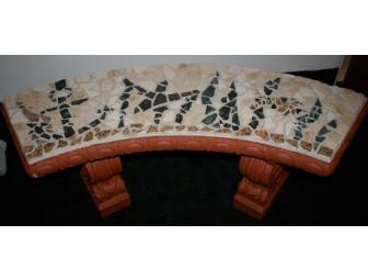 This creative and bold mosaic bench was designed and crafted by the 7th and 8th grade students. In the artwork you will find an anchor, a starfish, and a fish hiding in weeds.