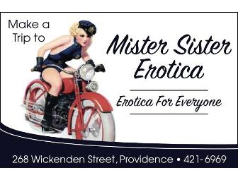 Nestled in the heart of Providence's Fox Point, Mister Sister offers a diverse selection of erotica catering to the eclectic neighborhood in which she stands. This $25 gift card allows you to choose from any number of tasteful and beautifully displayed items, among them clothing, adult toys, film, educational materials and much more.