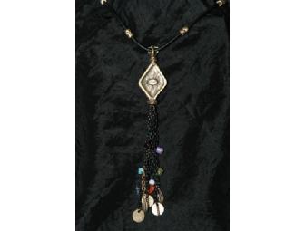 This colorful and wonderfully funky long necklace from Chico's with fun beading and charms will go with just about every outfit. Necklace is designed with gold and black accents and is good for all occasions.