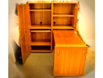 Gently used teak 52w 61h 22d. The extension is 54w 26d.