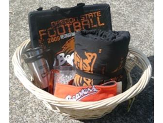 Show your spirit with this great OSU Beaver Football Sports Basket. Two tickets to the Portland State vs. OSU game September 5th, 2009. A parking pass, an OSU hat, ear warmer, Beaver Sports blanket and cushion for sitting.