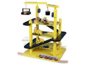 This playset adds to the fun of any wooden train set with four fantastic levels of play, two working cranes, three construction vehicles and much more. Also includes five wooden blocks for the crane. Compatible with all Yukon Express wooden train sets and accessories. Ages 3-9.