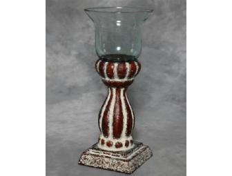 This beautiful bell jar with lovely distressed column base will be a great accent in any home. Place a votive candle inside to create ambiance. Put your favorite candies inside for a very stylish candy dish. Add shells, stones or marbles to create an extraordinary decorative piece to match any decor.
