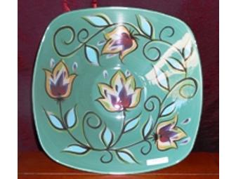 From Southern Living this Gail Pittman Bountiful Bowl in green/provence will brighten any home. The signature swirling vines and lilies accented in plum and goldenrod play against a jade backdrop. They're perfect for display on your countertop or sideboard, and you'll love the generous serving size.
