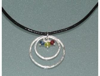 Custom made double circle necklace with up to 3 stones on a leather cord or sterling silver chain. Materials are sterling silver, pure silver (circles), and genuine precious and semi-precious stones.