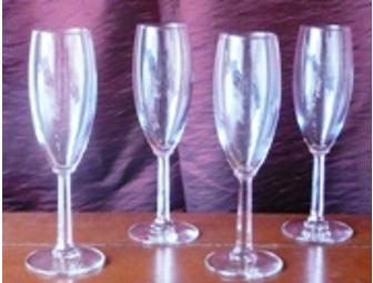 One dozen Libbey Monterey 6 ounce champagne flutes.