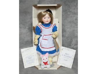 This original "Alice in Wonderland" doll from Carol Lawson's Fairy Tale Doll Collection stands 12" high and comes with certificate of authenticity and is packaged in the original box. This special doll is sure to please a doll collector of any age. Doll is in immaculate condition.