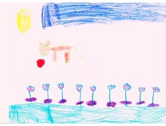 Each Faith Formation class was given a specific subject to create art around. For the kindergarten it was "Something I like to do". The art was then used to create cards. Card packets consist of 6 notecards with envelopes, 6 postcards and 1 magnet. The postcards fit a 4"x6" frame.