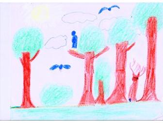Each Faith Formation class was given a specific subject to create art around. For the second grade it was "Thank you God For...". The art was then used to create cards. Card packets consist of 6 notecards with envelopes, 6 postcards and 1 magnet. The postcards fit a 4"x6" frame.