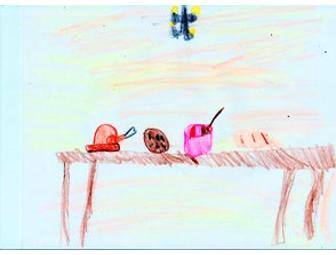 Each Faith Formation class was given a specific subject to create art around. For the second grade it was "Thank you God For...". The art was then used to create cards. Card packets consist of 6 notecards with envelopes, 6 postcards and 1 magnet. The postcards fit a 4"x6" frame.