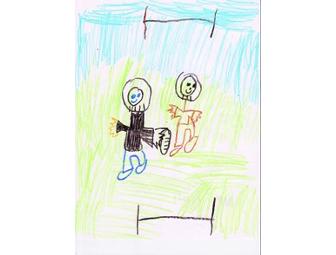 Each Faith Formation class was given a specific subject to create art around. For the firstgrade it was "What I want to be when I grow up". The art was then used to create cards. Card packets consist of 6 notecards with envelopes, 6 postcards and 1 magnet. The postcards fit a 4"x6" frame.