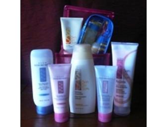 Everything you need to pamper yourself and make your Skin-So-Soft by Avon in a beautiful pink collapsible container. Fusions Dual softening body moisturizer, age-defying body wash, relaxing foam bath, creamy body butter, rejuvenating hand peel off mask, rejuvenating hand cream, and a Footworks pedicure set including foot soak and moisture gel.