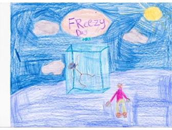 Each Faith Formation class was given a specific subject to create art around. For the forth grade it was "It's cold outside". The art was then used to create cards. Card packets consist of 6 notecards with envelopes, 6 postcards and 1 magnet. The postcards fit a 4"x6" frame.