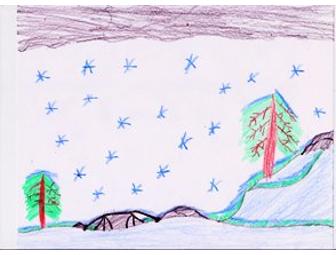 Each Faith Formation class was given a specific subject to create art around. For the forth grade it was "It's cold outside". The art was then used to create cards. Card packets consist of 6 notecards with envelopes, 6 postcards and 1 magnet. The postcards fit a 4"x6" frame.