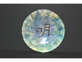The Chinese characters in the middle of Ming Tsai’s plate mean brightness – they are the combination of the sun and the moon, and hence there is always brightness there. He writes: “Peace and Good Eating.” Tsai is the chef/owner of Blue Ginger, Wellesley, MA, and the host/executive producer of public television’s Simply Ming.