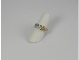 Ladies 18 karat two-tone ring set with diamonds that weigh 0.31 carats total weight and yellow diamonds that weigh 0.13 carats total weight.