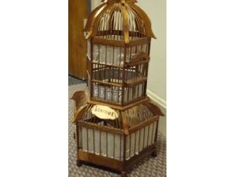 A lovely lamp, imported from Thailand. Made from a birdcage of wrought iron. Adds the perfect exotic touch to the home. Hang it over the dining table or anywhere you'd want a bit of tropical intrigue and glamour.