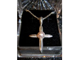 Beautiful Silver Cross Pendant with Pearl and 2 Chains