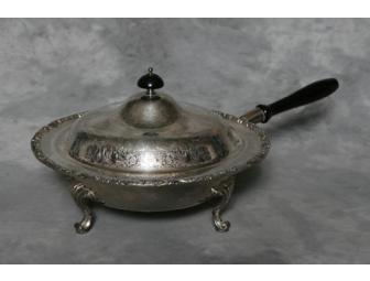 You have to see this piece in person to truly appreciate its beauty! With gorgeous etching on the lid and stunning embellishments all around, this electric heated silver serving tray with handle will not only keep your food warm, but it will bring amazing beauty to your table as well.