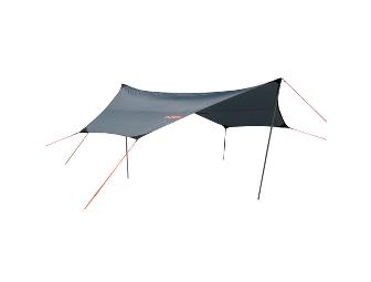 - The huge 190 sq. ft. canopy (17'L x 16' at widest point) will cover your camp tables and still give room for your crew to wait out the storm. Great for those layover days when shade is at a premium.