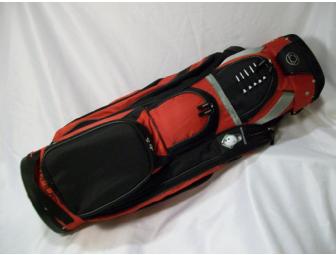 Enjoy this Datrek golf cart bag. Specifications: 9 color coordinated organizer top 8 pockets, including a lined valuables pocket 14 individual full length dividers Bag weighs 6.4 lbs. Crush proof stay and ring construction Integrated putter tube Cart strap guidance system Ball drop pocket