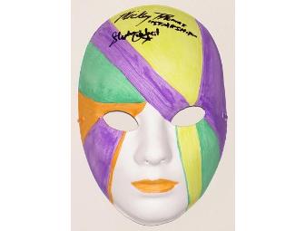 This mask was painted and signed by Mickey Thomas. He sings lead vocals in the band knows as 'Starship featuring Mickey Thomas'.