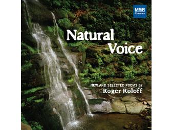 Natural Voice, a CD of poet (and baritone) Roger Roloff reciting 40 of his poems; a signed copy of Roloff’s newest book of poems, Illuminations; plus an in-person recitation by Mr. Roloff at a private gathering the New York metropolitan area.
